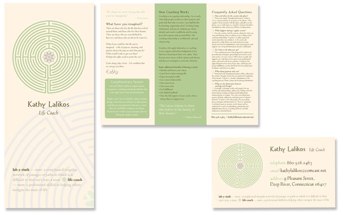 Brochure and business card for a life coach